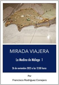 El próximo miércoles 26 de noviembre de 2025 a las 12:00 horas, Francisco Rodríguez Conejero, responsable de este taller, nos hablará del siguiente tema: La Medina de Málaga 1.