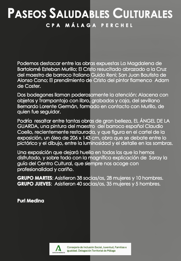 El martes 24 y jueves 26 de marzo 2026, los grupos de PASEOS SALUDABLES CULTURALES, hicimos una visita al CENTRO CULTURAL DE LA FUNDACION UNICAJA, en su sede del Palacio Episcopal…