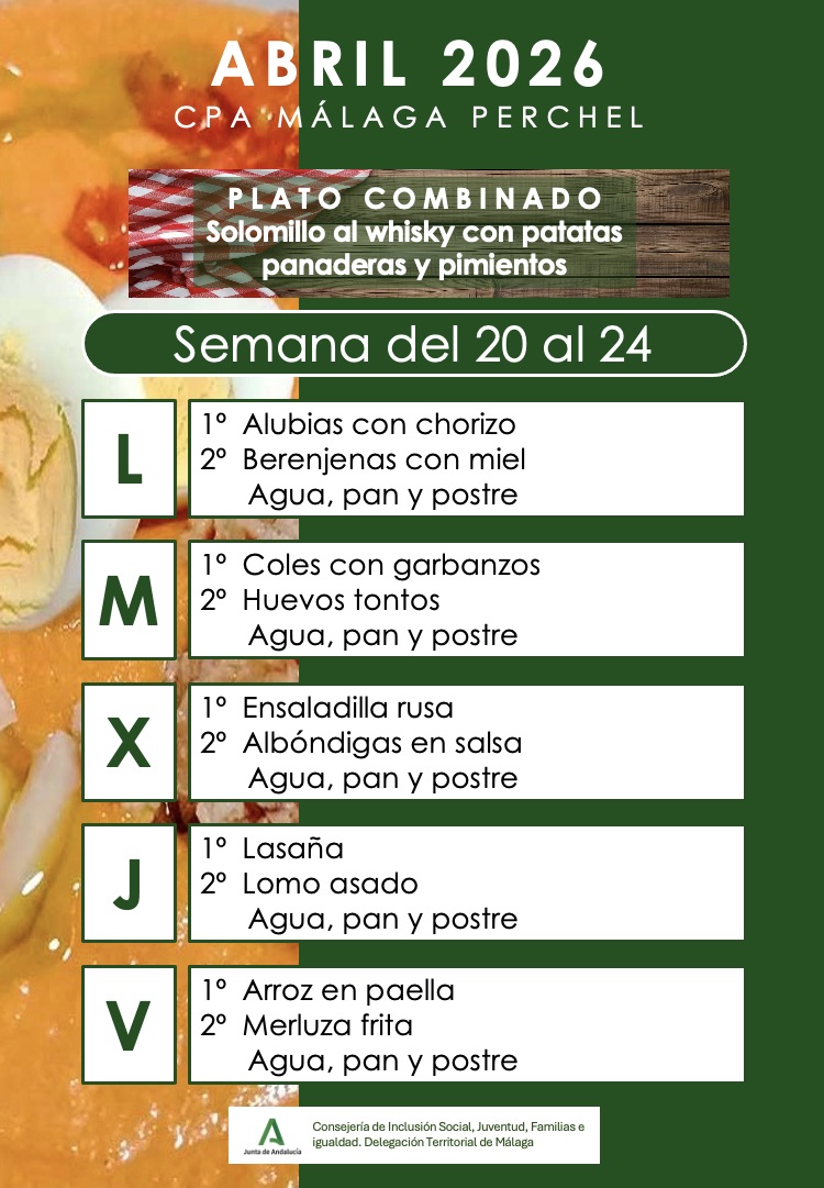 Menú correspondiente a la semana del 20 al 24 de Abril de 2026. Para mas información pinche sobre COMEDOR Post Views: 20 Navegación de entradas Menú semanal del 13 al 17 de Abril de 2026