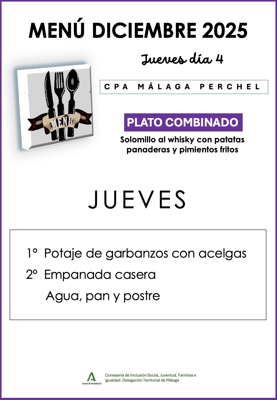 Este es el menú del próximo jueves 4 de diciembre 2025