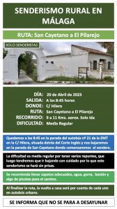 El próximo jueves 20 de Abril de 2023, haremos un nuevo senderismo desde La Venta San Cayetano a El Pilarejo. Nos acompañarán como siempre Conchi y Andrés, responsables de Senderismo.