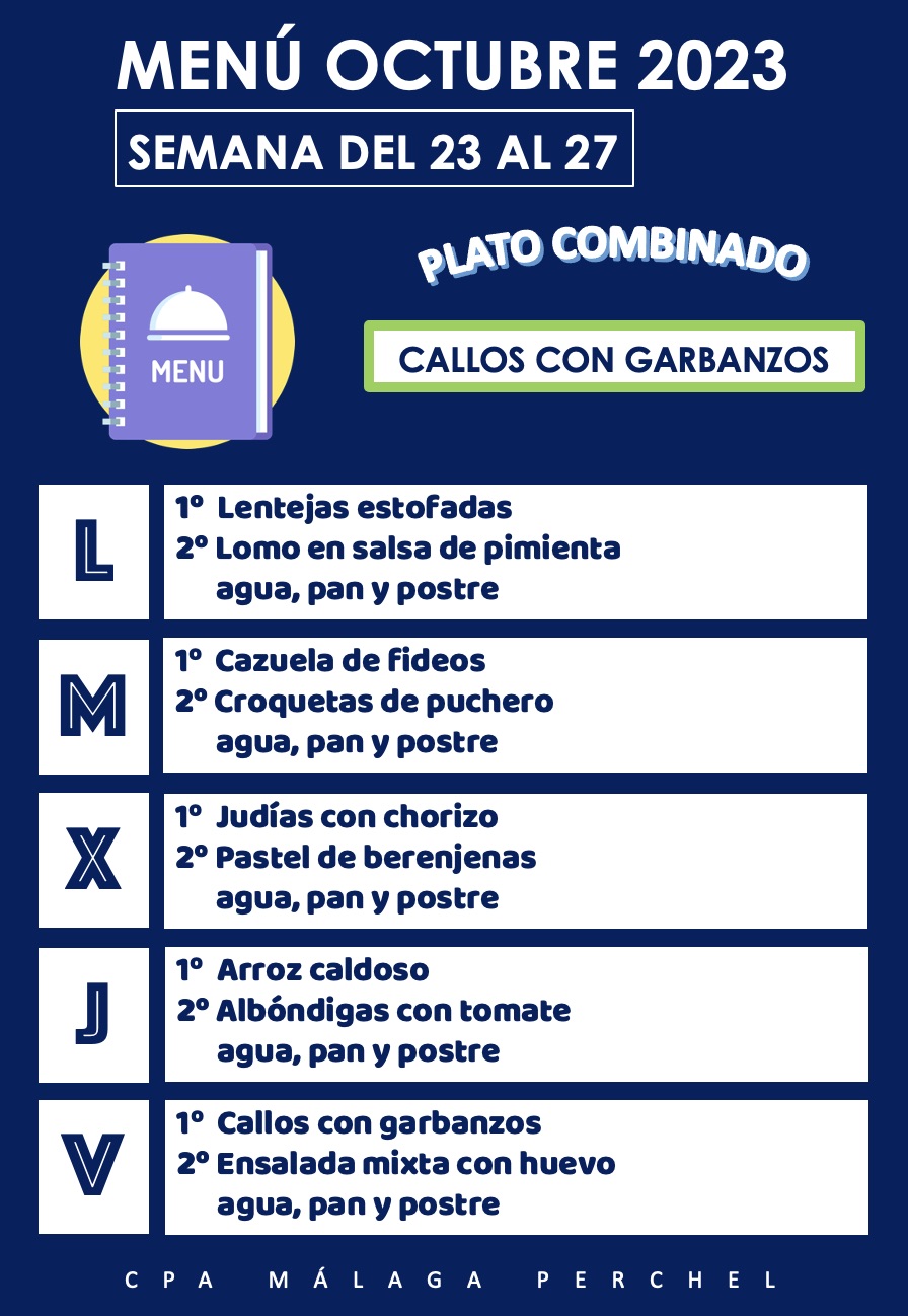 Menú correspondiente a la semana del día 23 al 27 de octubre de 2023. Para mas información pinche sobre COMEDOR Post Views: 705 Navegación de entradas Menú del 16 al 20 de Octubre 2023 Menú del 30 de OCT al 3 de NOV 2023