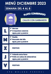 Menú correspondiente a la semana del día 4 al 8 de diciembre de 2023 Para mas información pinche sobre COMEDOR Post Views: 922 Navegación de entradas Menú del 27 de Noviembre al 1 de Diciembre 2023 Menú del 11 al 15 de Diciembre 2023