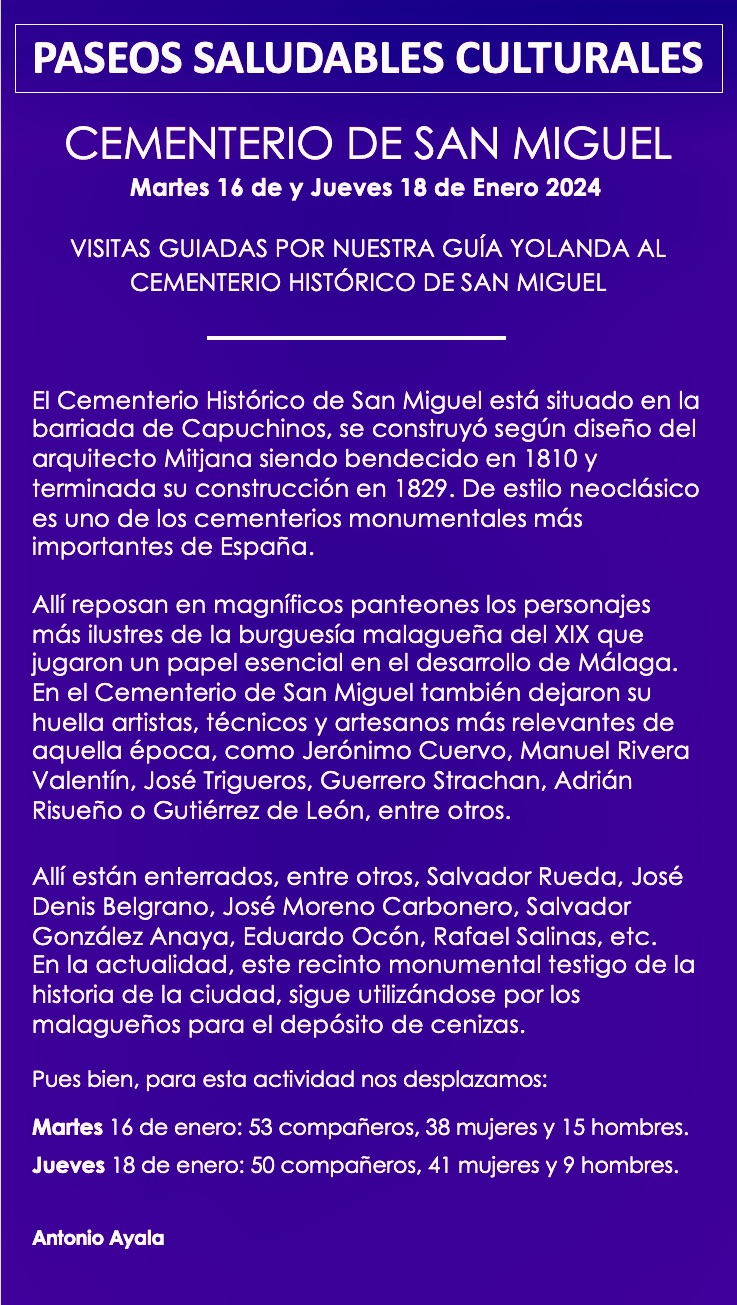 El Cementerio Histórico de San Miguel está situado en la barriada de Capuchinos, se construyó según diseño del arquitecto Mitjana siendo bendecido en 1810 y terminada su construcción en 1829.