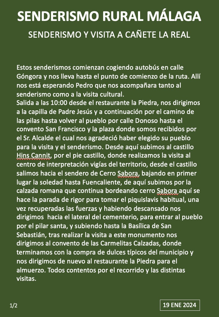 Los días 19 y 25 de Enero 2024 visitamos la localidad malagueña de Cañete la Real donde además de visitar este bonito pueblo, hicimos unas rutas de senderismo…