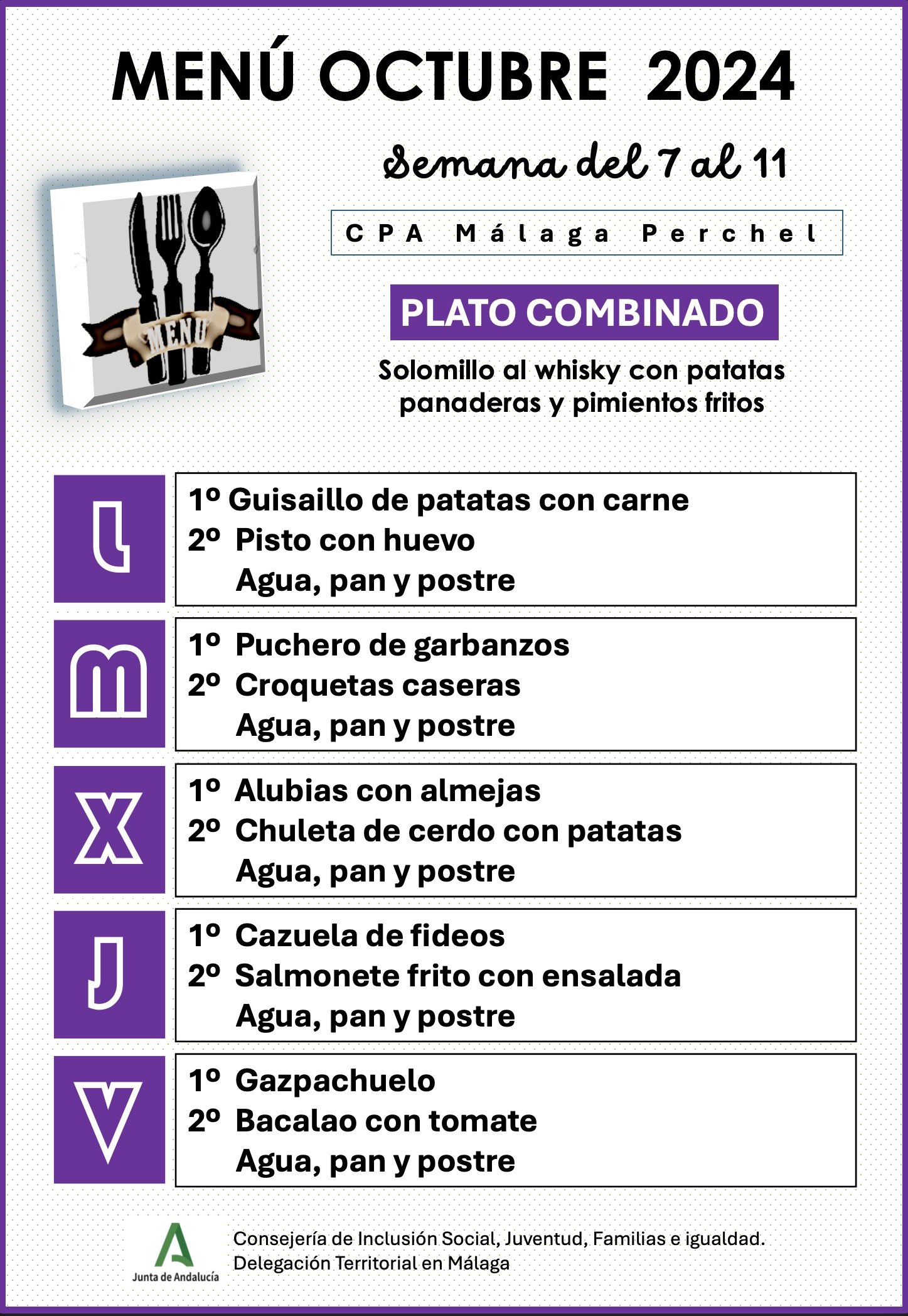 Menú correspondiente a la semana del día 7 al 11 de octubre 2024. Para mas información pinche sobre COMEDOR Post Views: 608 Navegación de entradas Menú semanal del 30 de Septiembre al 4 Octubre 2024 Menú semanal del 14 al 18 de Octubre 2024
