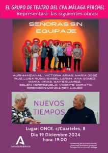 El próximo día 19 de diciembre 2024, el grupo de Teatro del CPA Málaga Perchel representará las simientes obras… Post Views: 624 Navegación de entradas Encuentro comarcal de CPAS, Teatro y Senderismo en Ronda Circuito Provincial de Teatro en Archidona, recorrido y fotos