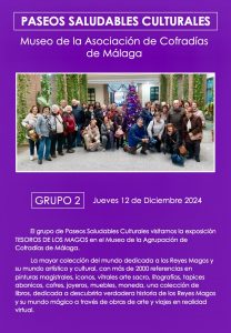 El pasado día 12 de diciembre 2024, el grupo de Paseos Saludables Culturales visitamos la exposición TESOROS DE LOS MAGOS en el Museo de la Agrupación de Cofradías de Málaga…