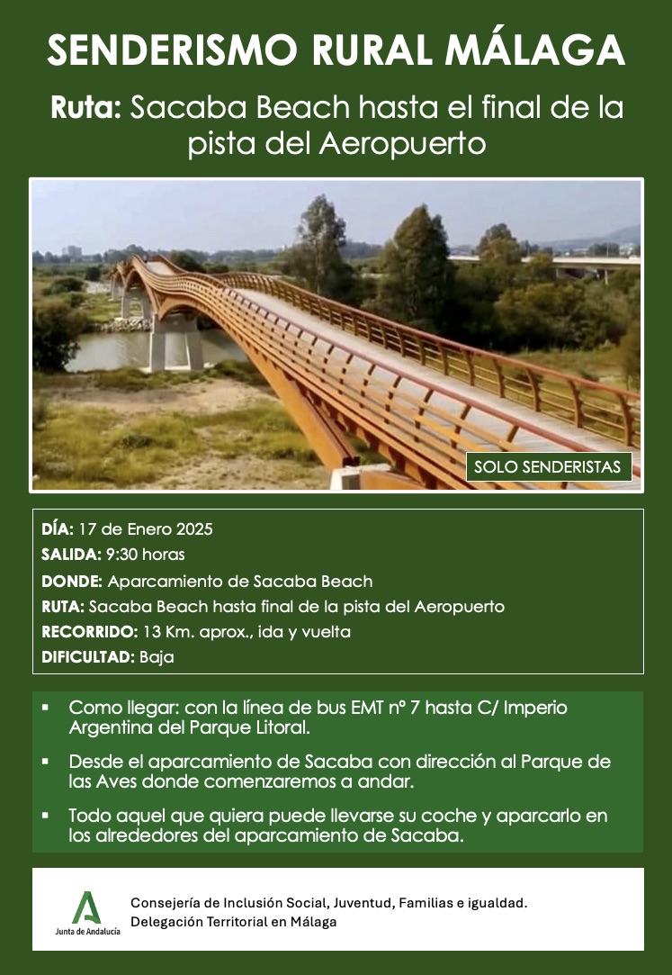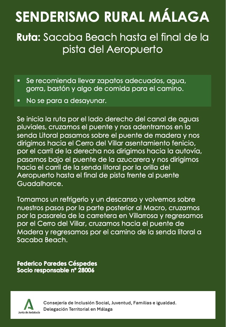 Se inicia la ruta por el lado derecho del canal de aguas pluviales, cruzamos el puente y nos adentramos en la senda Litoral pasamos sobre el puente de madera y nos dirigimos hacia el Cerro del Villar asentamiento fenicio…