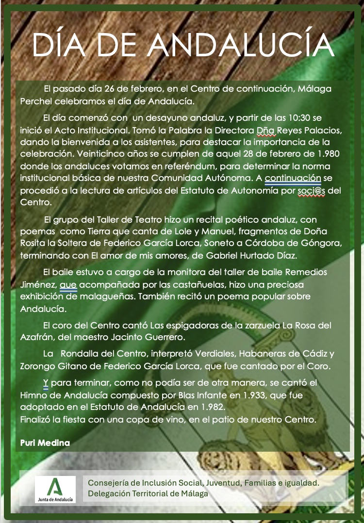 El día 26 de febrero 2025 en el CPA Málaga Perchel se celebró el día de Andalucía, comenzó con un desayuno andaluz… VIDEO 1 VIDEO 2 VIDEO 3 VIDEO 4 VIDEO 5 FOTOS Y VIDEOS Paco Pineda Post Views: 409