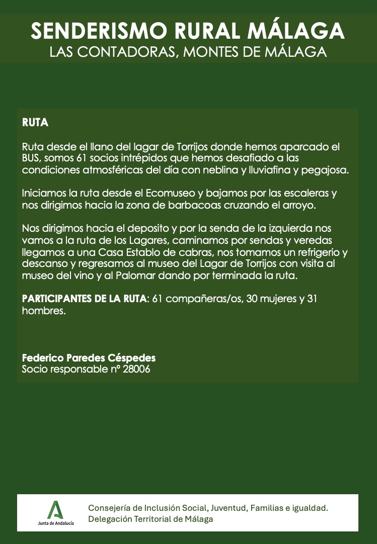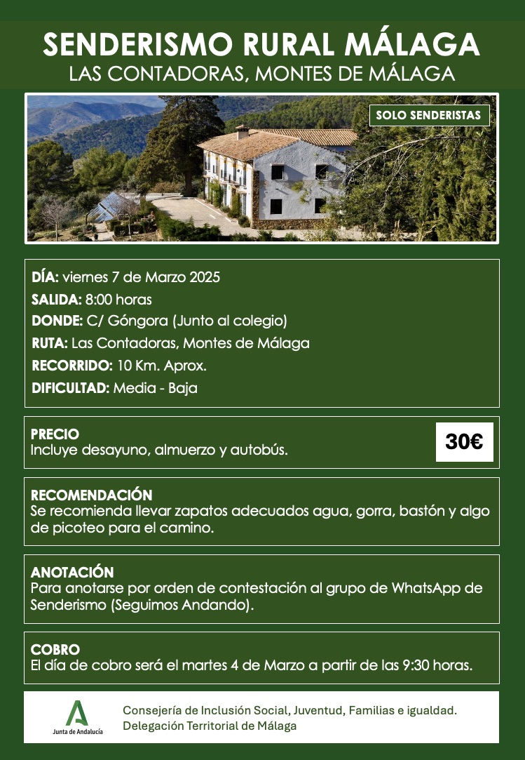 El pasado viernes 7 de marzo 2025 el grupo de Senderismo organizó una nueva ruta por los Montes de Málaga…