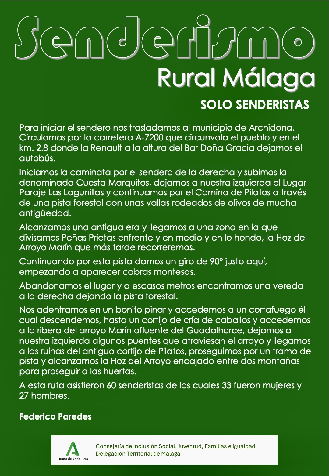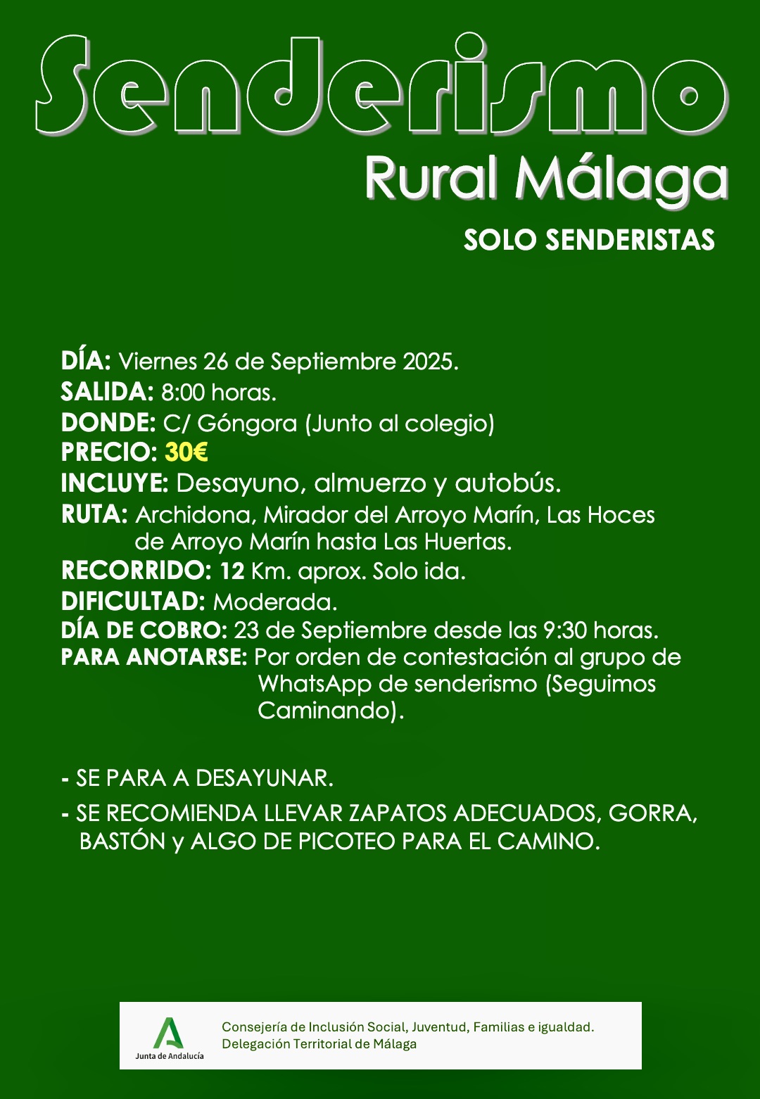 El pasado viernes 26 de Septiembre 2025 el grupo de Senderismo realizó ruta por Archidona…