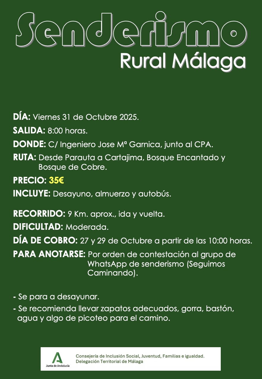 El pasado viernes 31 de Octubre 2025, el grupo de Senderismo organizó una nueva ruta desde Parauta a Cartajima, provincia de Málaga…