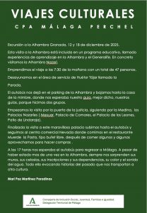 Los pasados días 12 y 18 de diciembre 2025, visitamos la Alhambra, esta visita está incluida en un programa educativo, llamado experiencias de aprendizaje en la Alhambra y el Generalife, en concreto visitamos la Alhambra Nazarí…