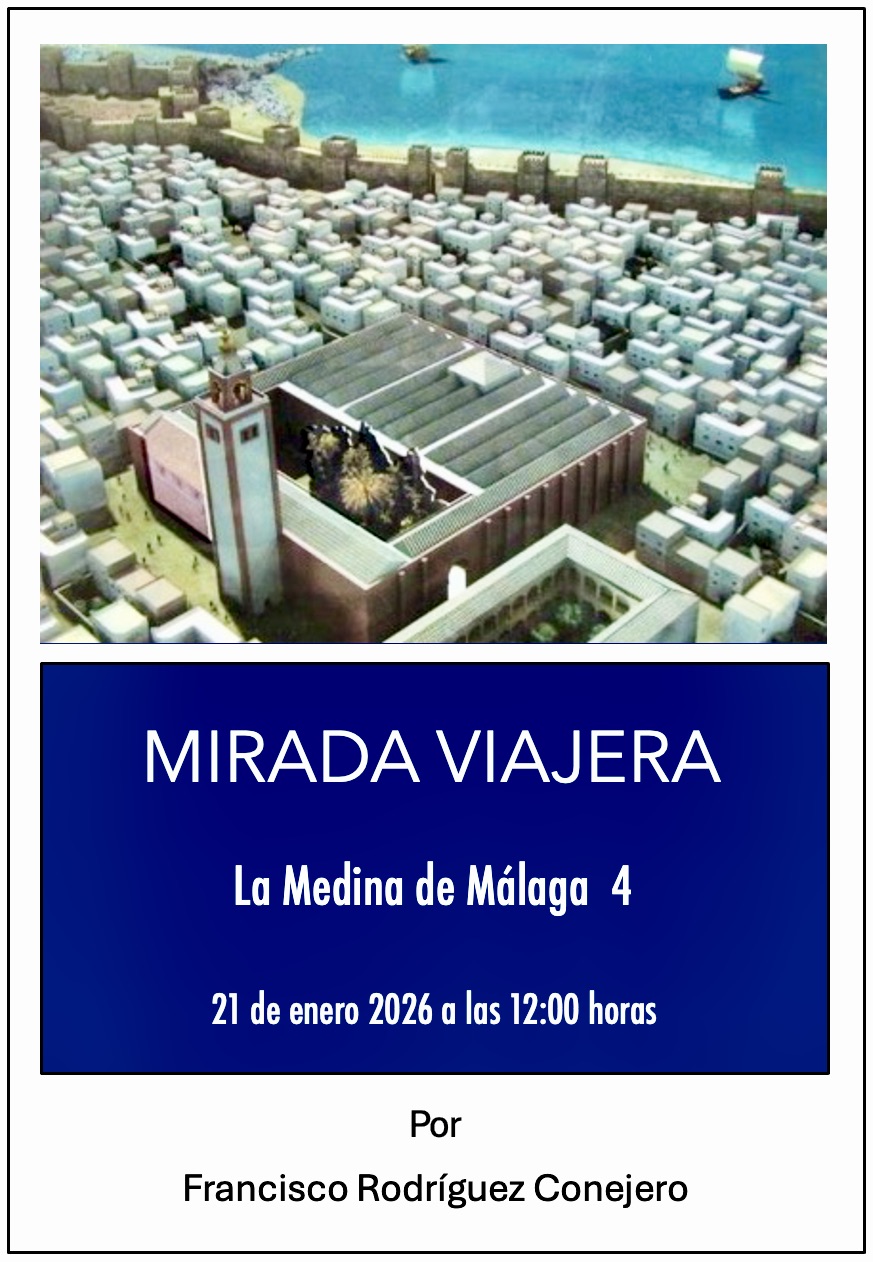 El próximo miércoles 21 de enero de 2026 a las 12:00 horas, Francisco Rodríguez Conejero, responsable de este taller, nos hablará del siguiente tema: La Medina de Málaga 4.