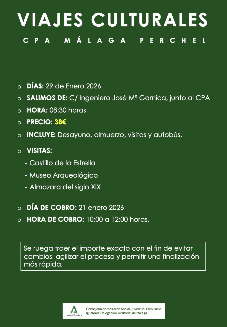 El próximo día 29 de enero 2026, el grupo de Viajes Culturales hará un viaje a la localidad malagueña de Teba. Post Views: 75 Navegación de entradas Información. Visita a la ciudad de Jaén