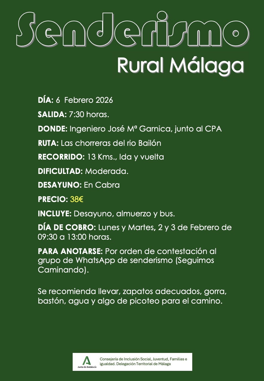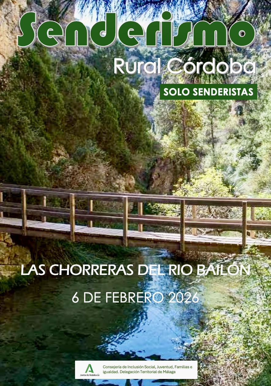El próximo día 6 de febrero 2026, el grupo de Senderismo ha organizado una nueva ruta a Las Chorreras del Río Bailón en Cabra (Córdoba).