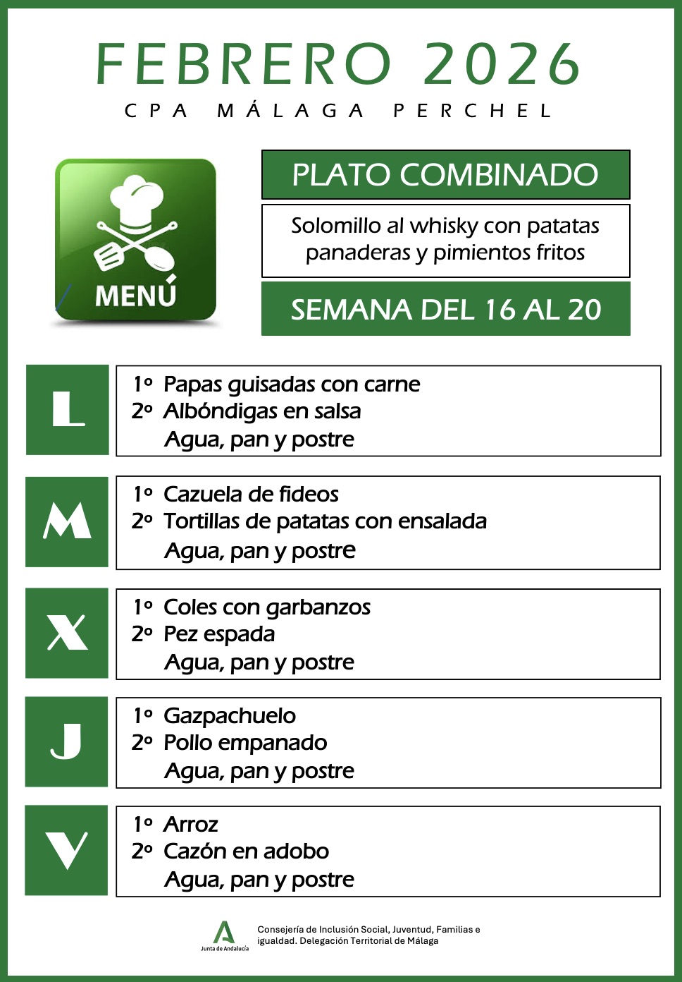 Menú correspondiente a la semana del 16 al 20 de Febrero de 2026. Para mas información pinche sobre COMEDOR Post Views: 26 Navegación de entradas Menú semanal del 9 al 13 de febrero 2026