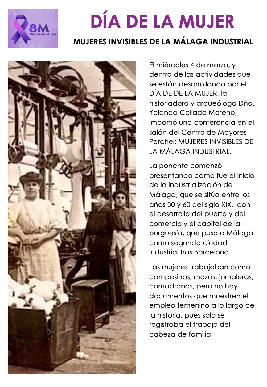 El miércoles 4 de marzo 2026 y dentro de las actividades que se están desarrollando por el DIA DE DE LA MUJER, la historiadora y arqueóloga Dña.Yolanda Collado Moreno, impartió una conferencia en el salón del Centro de Mayores Perchel…