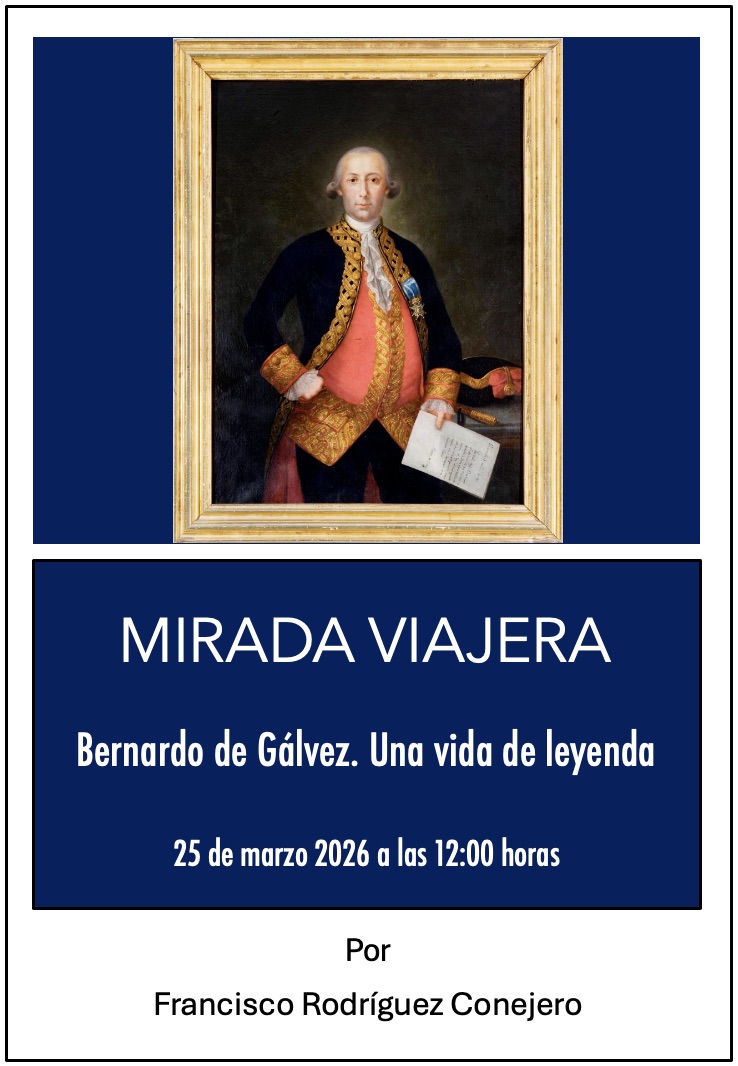 El próximo miércoles 25 de marzo de 2026 a las 12:00 horas, Francisco Rodríguez Conejero, responsable de este taller, nos hablará del siguiente tema: Bernardo de Gálvez. Una vida de leyenda.
