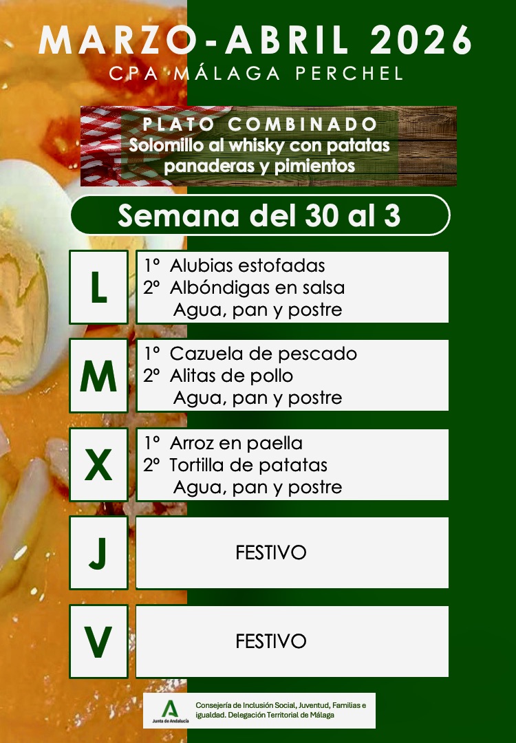 Menú correspondiente a la semana del 30 de Marzo al 3 de Abril de 2026. Para mas información pinche sobre COMEDOR Post Views: 14 Navegación de entradas Menú semanal del 23 al 27 de Marzo 2026