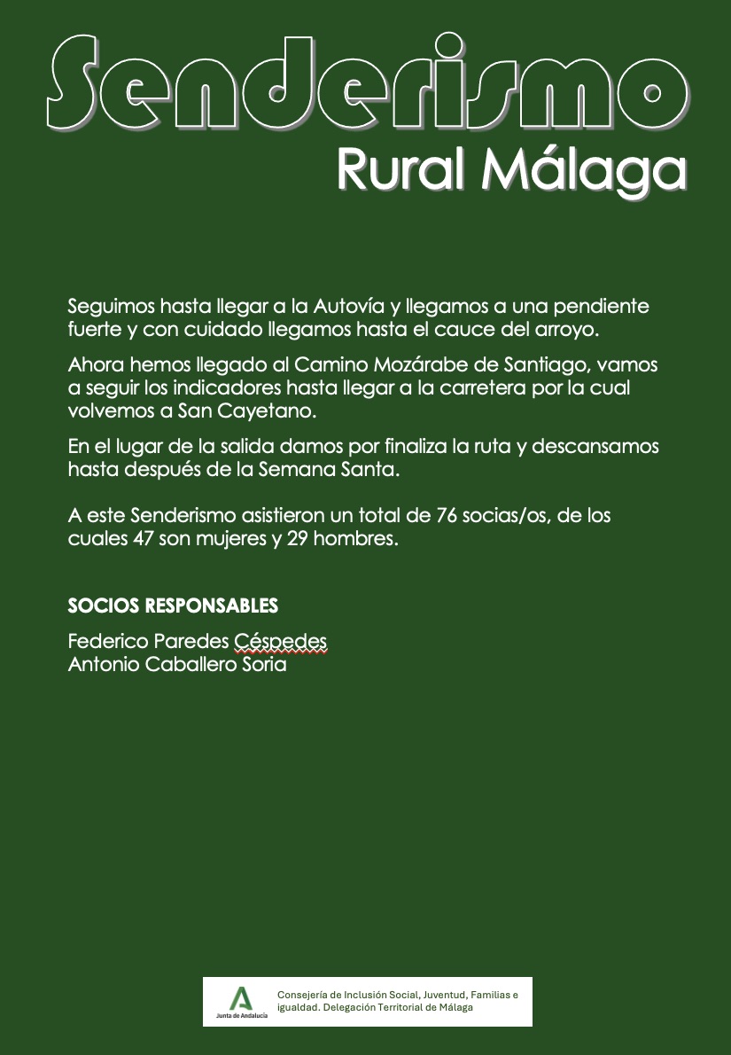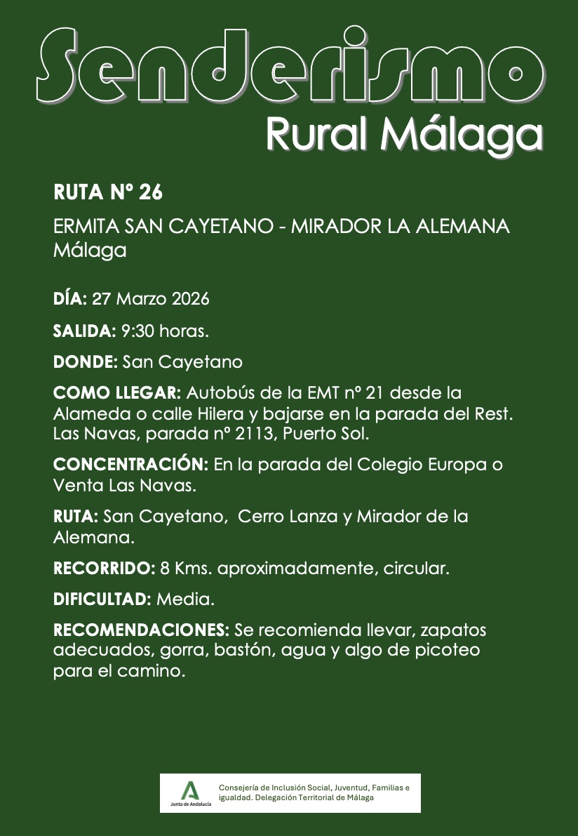 El pasado día 27 de marzo de 2026, el grupo de Senderismo organizó una nueva ruta que va desde la Ermita San Cayetano hasta el mirador La Alemana…