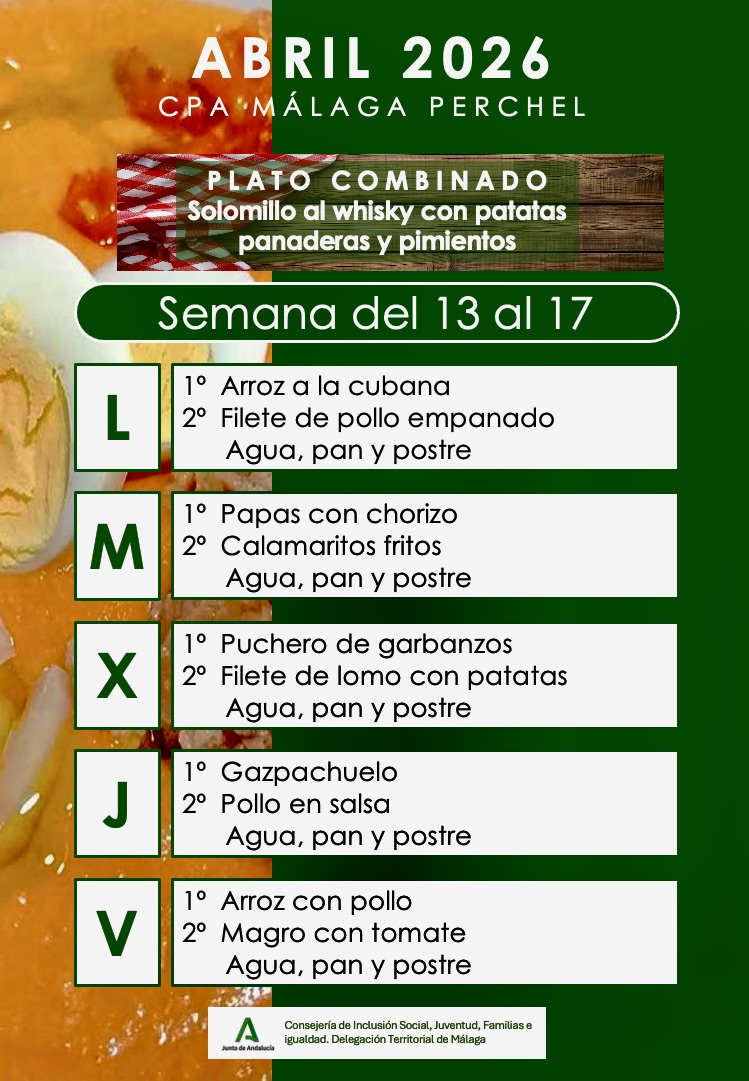 Menú correspondiente a la semana del 13 al 17 de Abril de 2026. Para mas información pinche sobre COMEDOR Post Views: 19 Navegación de entradas Menú semanal del 6 al 10 de Abril de 2026