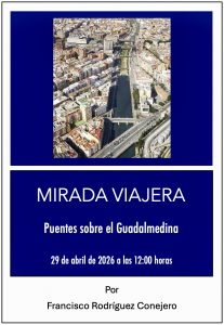 El próximo miércoles 29 de abril de 2026 a las 12:00 horas, Francisco Rodríguez Conejero, responsable de este taller, nos hablará del siguiente tema: Puentes sobre el Guadalmedina.