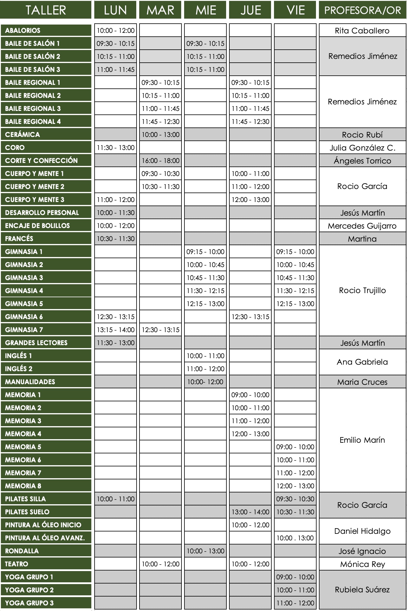 Horario de Talleres