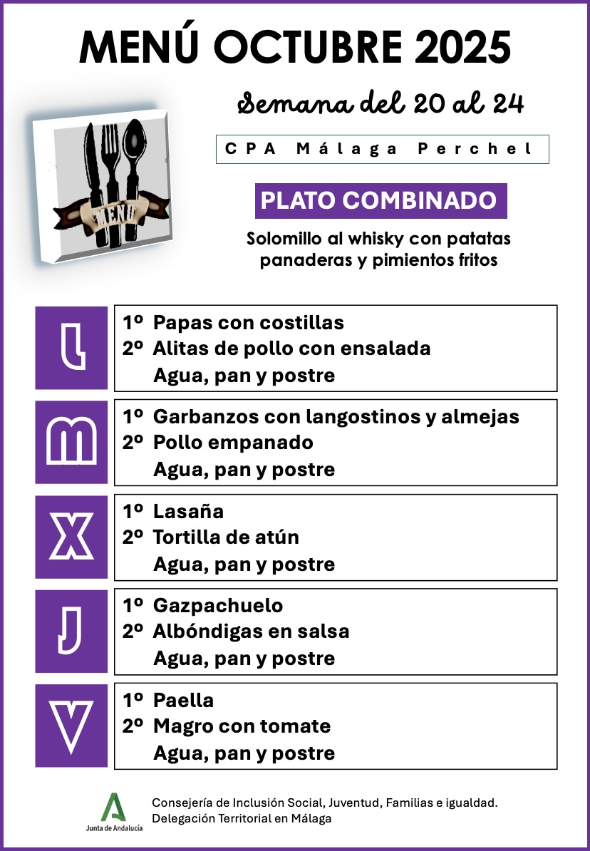 Menú correspondiente a la semana del 20 al 24 de Octubre de 2025.